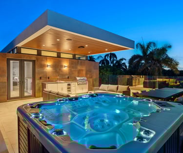 Perched above the sparkling waters of Biscayne Bay, Villa Savant is a show-stopping sanctuary boasting one of Miami Beach's only infinity rooftop pools - with jaw-dropping views of downtown, South Beach, and golden sunsets melting into the horizon. This sky-high oasis is made for indulgence, featuring a rooftop jacuzzi, sleek entertainment bar, and multiple open-air terraces ideal for sunset cocktails and alfresco dining under the stars.