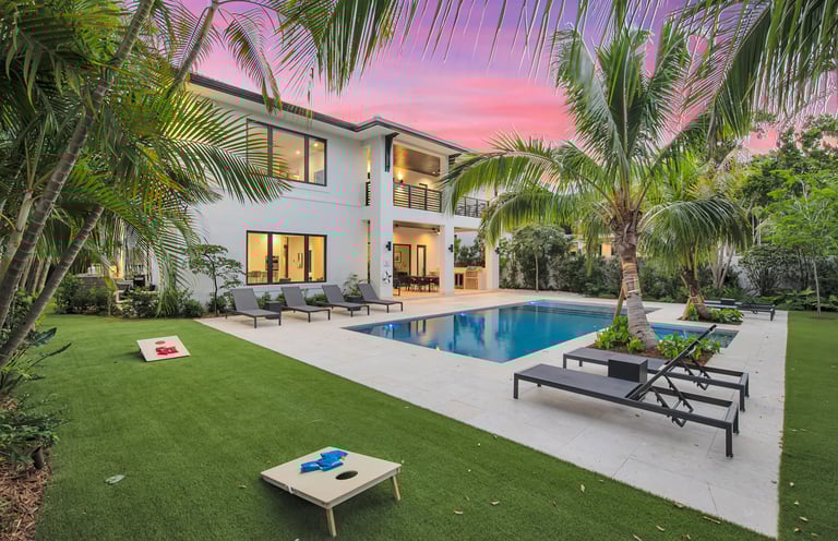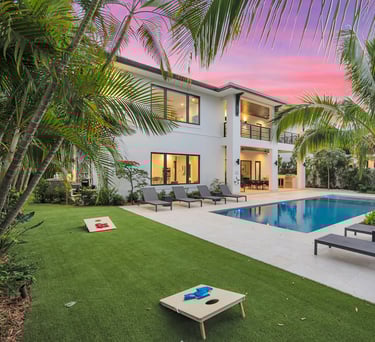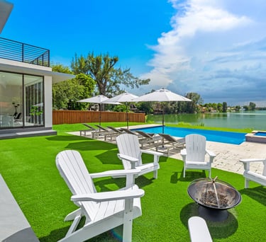 1-acre luxury estate in North Miami Beach, where lush landscaping, modern design, and world-class amenities come together to create a one-of-a-kind rental Escape to this fully gated 1-acre estate designed for privacy, comfort, and fun.